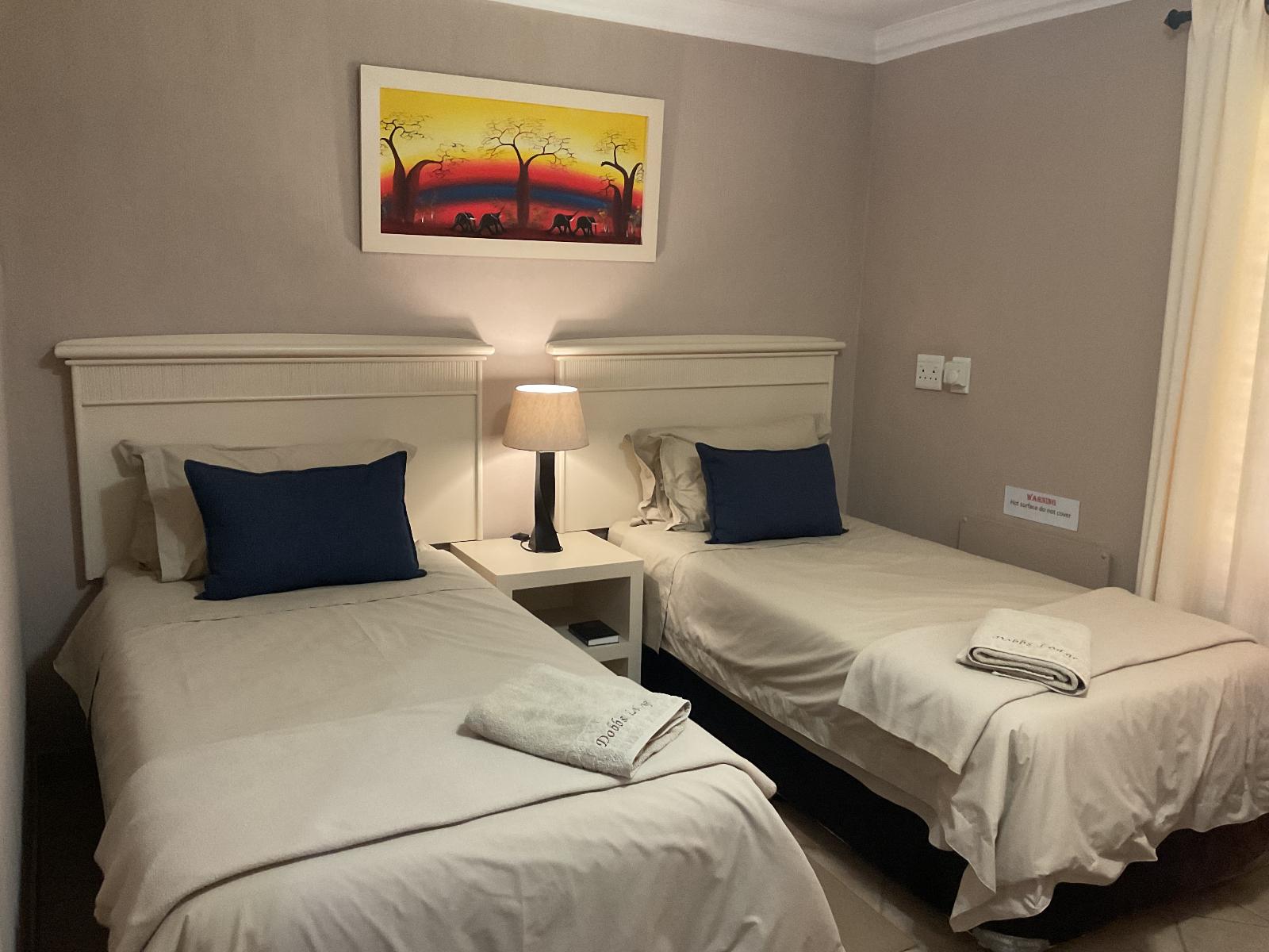 Spacious twin room with two single beds and full self-catering amenities.
